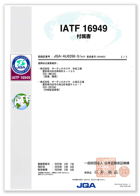 ・事業所:株式会社サーテックカリヤ 本社工場、小垣江工場、大津崎工場
